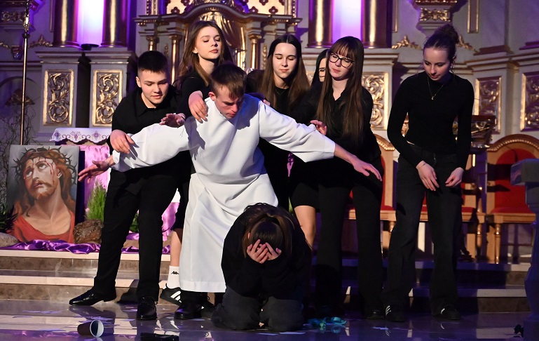 Wielki Post w Kościele katolickim to 40-dniowy czas pokuty, modlitwy i nawrócenia przygotowujący do Wielkanocy. Charakteryzuje się skromnym wystrojem świątyń, brakiem kwiatów, fioletowym kolorem szat liturgicznych oraz szczególnymi nabożeństwami pasyjnymi, takimi jak Droga Krzyżowa i Gorzkie Żale, które przybliżają mękę Chrystusa. Ważnym wydarzeniem w naszym kościele była również pantomima w wykonaniu Duszpasterstwa Młodzieży w ostatni piątek przed wieczorną Drogą Krzyżową, której tradycyjnie towarzyszy Diakonia Muzyczna.